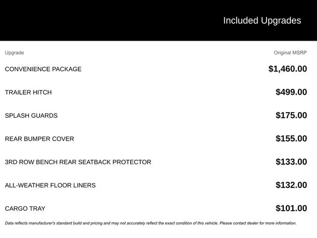 - Convenience Package (Reverse Automatic Braking, Auto-Dimming Rearview Mirror, Power Rear Gate, Keyless Access)