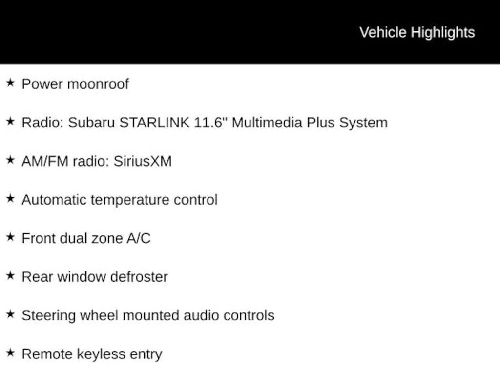 ⢠Radio: Subaru STARLINK 11.6" Multimedia Plus System