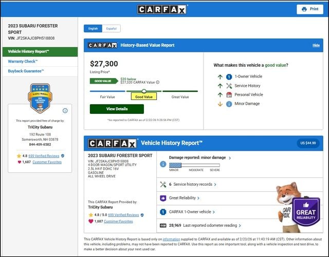 With an EPA-estimated 26 MPG in the city and 33 MPG on the highway, the Forester Sport strikes an impressive balance between performance and efficiency. Whether you're navigating the daily commute or embarking on a weekend adventure, this Subaru SUV is ready to handle it all with ease and style.