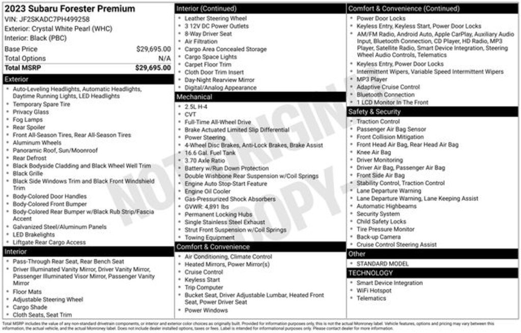 Discover the perfect blend of versatility, performance, and style with the 2023 Subaru Forester Premium. This exceptional SUV is designed to elevate your driving experience and meet the demands of your active lifestyle.