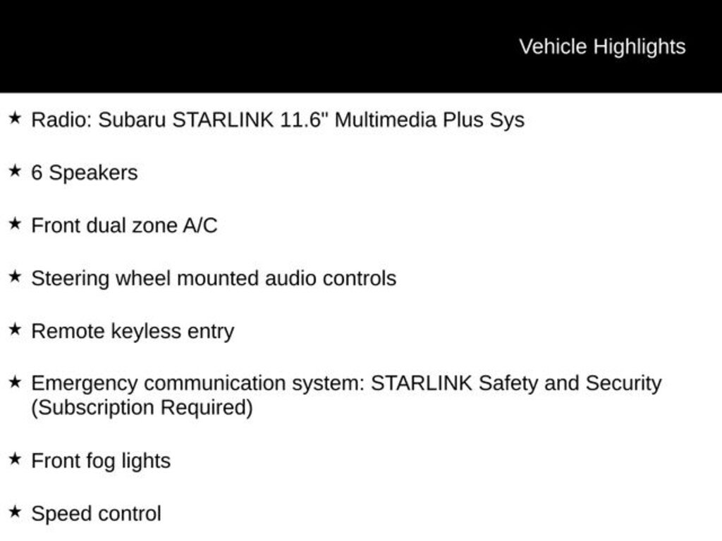 - Radio: Subaru STARLINK 11.6" Multimedia Plus Sys