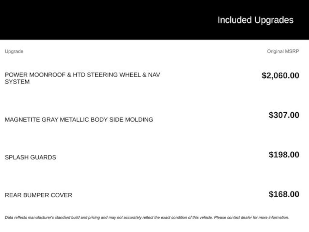 - Power Moonroof & Htd Steering Wheel & Nav System