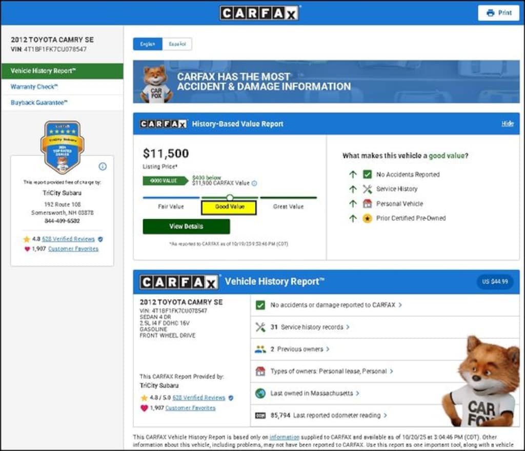 Elevate Your Driving Experience with This Exceptional 2012 Toyota Camry SE