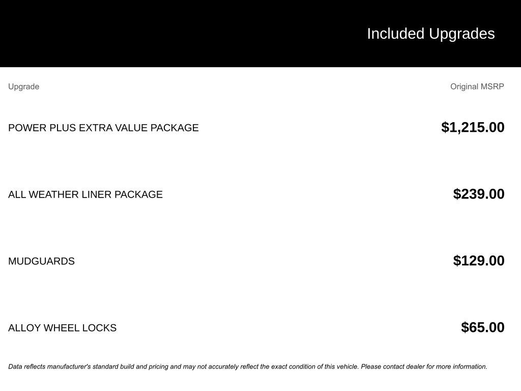 - GVWR: 2,105kg (4,640lbs)